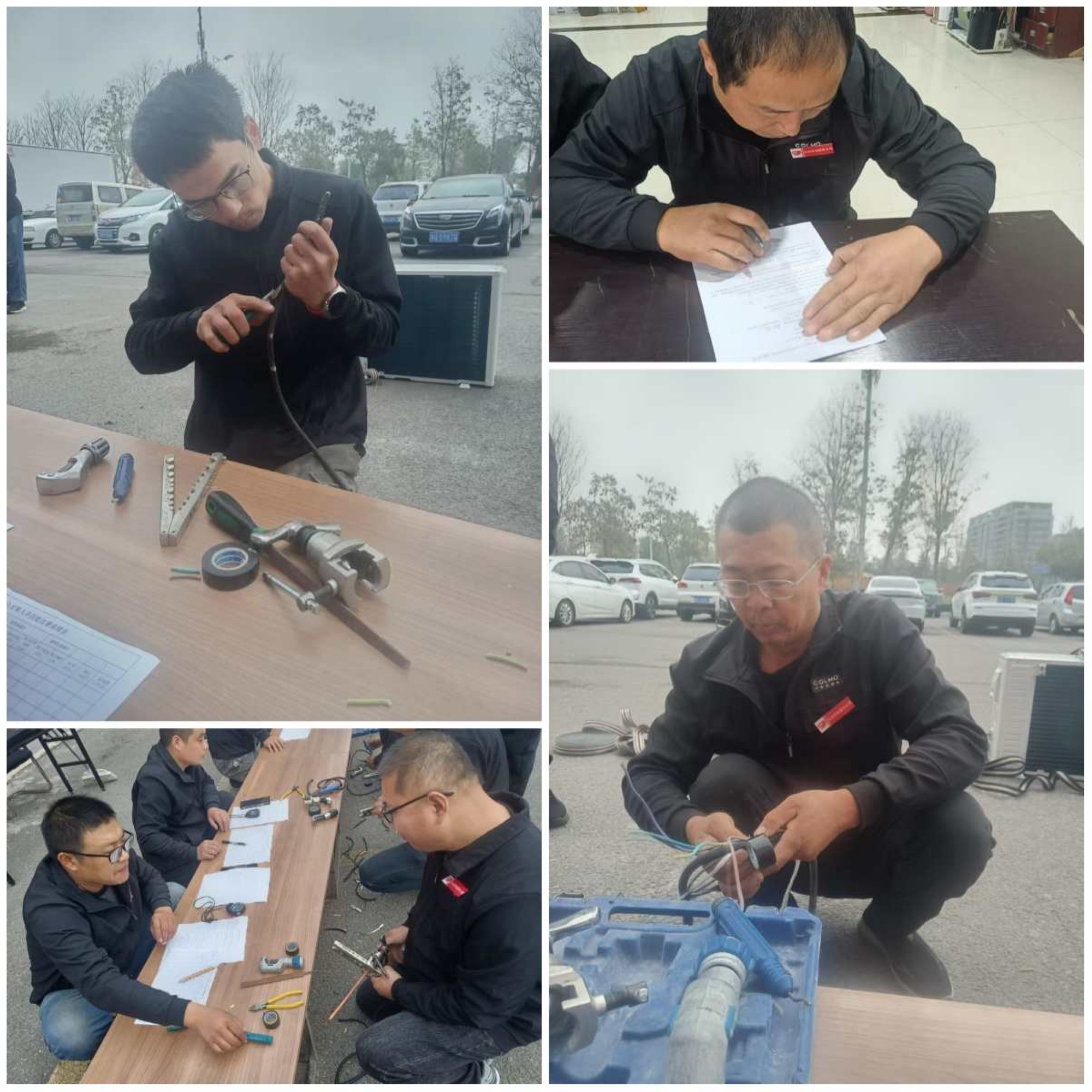 本次比武分為理論考試和空調(diào)安裝專業(yè)實操兩部分,比賽內(nèi)容主要涵蓋集團企業(yè)文化、服務(wù)理念及空調(diào)安裝操作全流程。在空調(diào)安裝專業(yè)實操環(huán)節(jié),參賽人員技術(shù)規(guī)范、動作嫻熟,全力以赴地完成了比賽要求的每一個規(guī)范性動作。在理論考試環(huán)節(jié),參賽人員胸有成竹、沉著應(yīng)對,在規(guī)定時間內(nèi)順利完成了試卷的作答。經(jīng)過綜合評比,尹傳賓、梁明寶、郭建華分別獲得本次比賽的第一、二、三名。