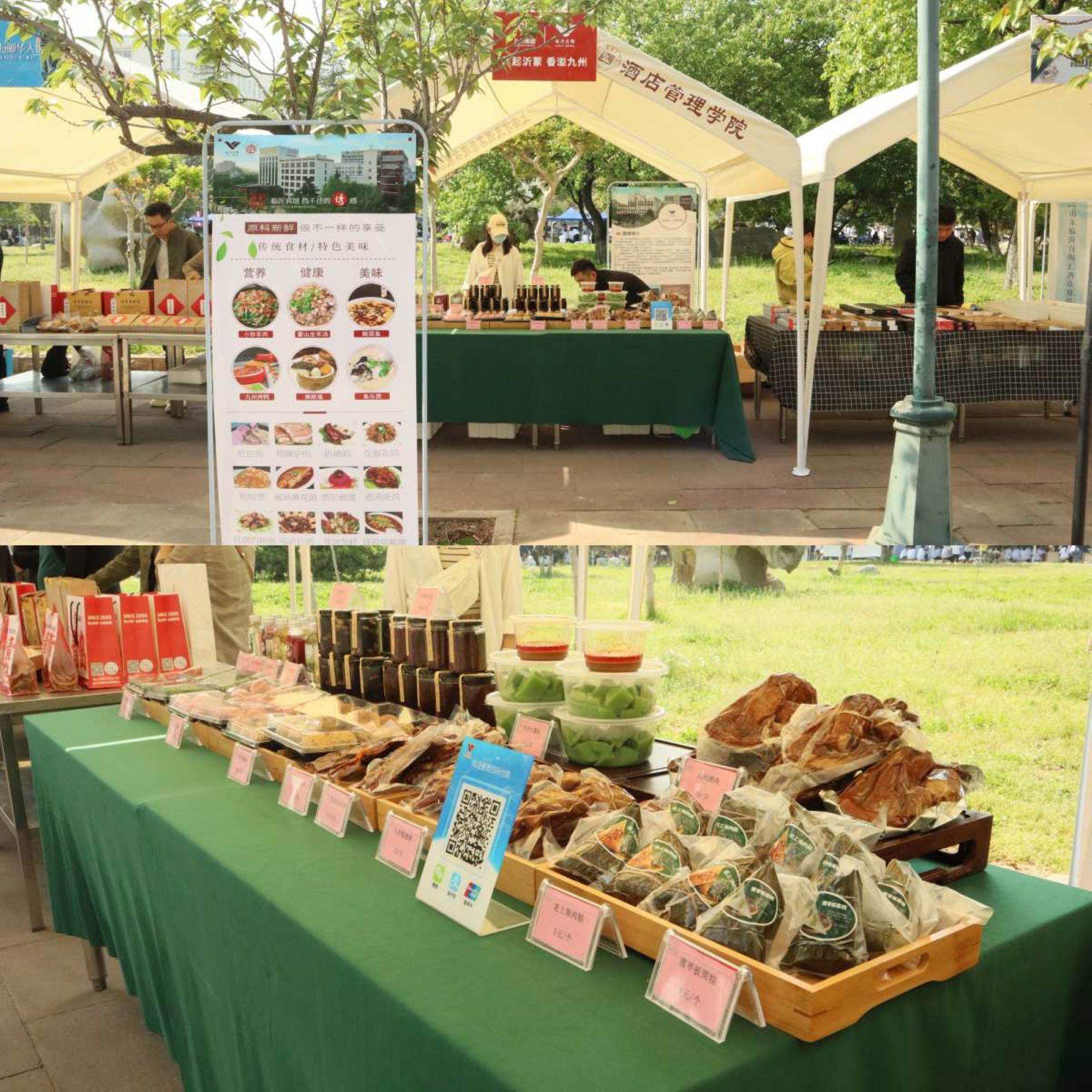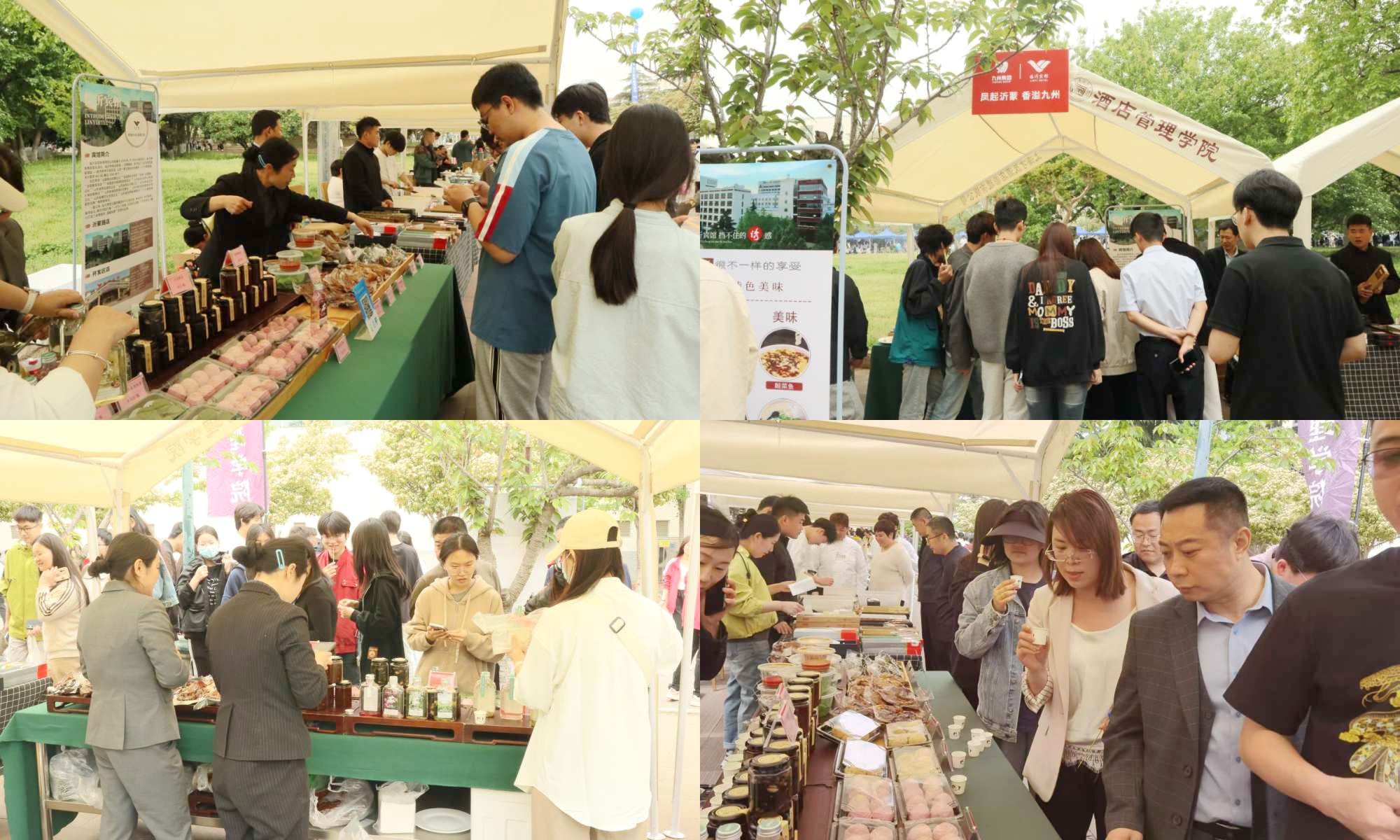 活動(dòng)前,臨沂賓館工作人員精心策劃選品,力求為師生帶來(lái)高品質(zhì)的互動(dòng)體驗(yàn);顒(dòng)現(xiàn)場(chǎng),工作人員將精心制作的冷泡茶、青團(tuán)、麻薯、櫻花紅豆酥等特色美食整齊陳列,還在現(xiàn)場(chǎng)設(shè)置了燒雞、豬蹄、老上海肉粽等熟食區(qū),豐富的品類(lèi)、地道的風(fēng)味吸引了眾多師生品鑒購(gòu)買(mǎi),攤位前人頭攢動(dòng),氣氛熱烈。