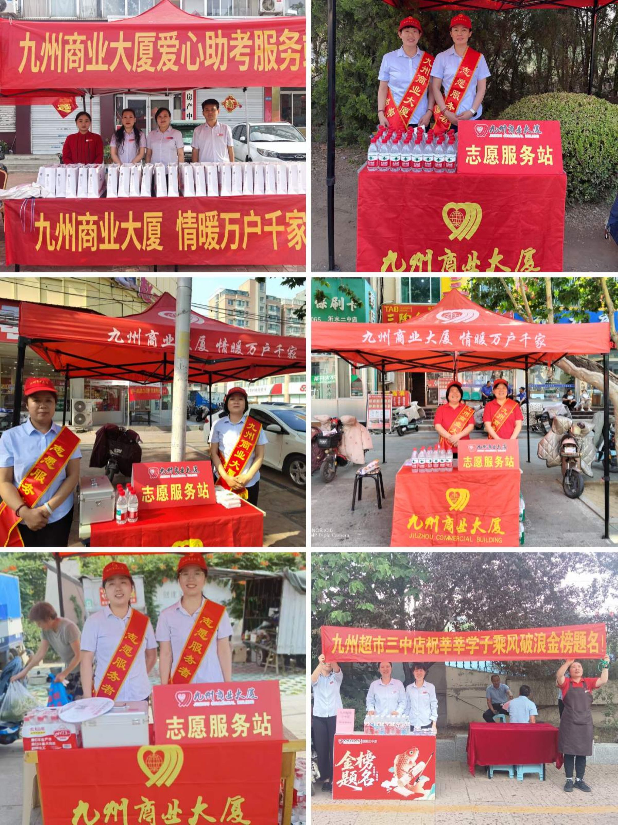 九州家電臨沭店組織黨員志愿者們在臨沭縣各主要考點周邊設(shè)立了“愛心助考服務(wù)站”。準(zhǔn)備了2B 鉛筆、中性筆、橡皮等考試必備文具以及充足的礦泉水、藿香正氣水、風(fēng)油精等防暑降溫用品,在炎炎夏日為大家送去清涼與關(guān)懷。