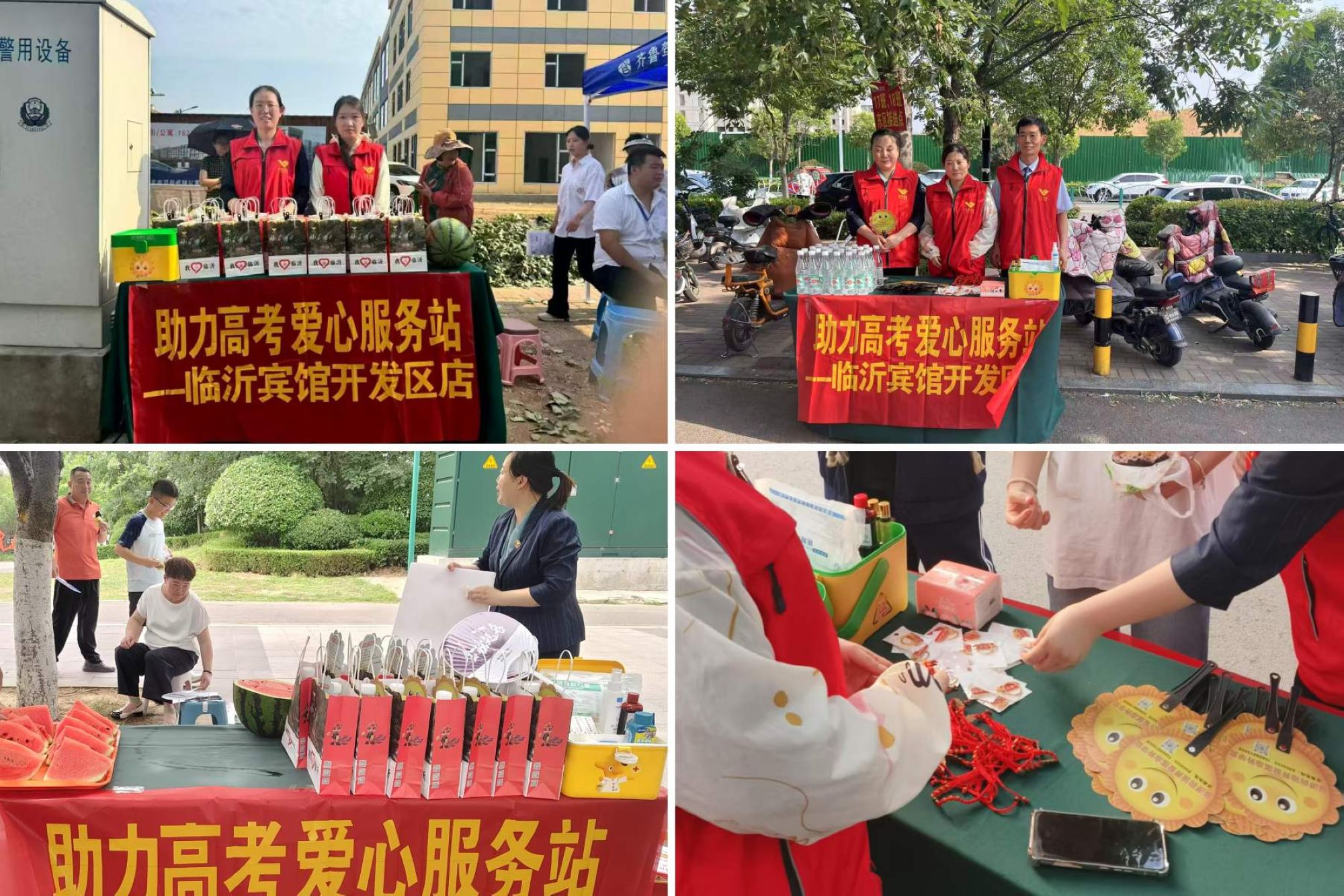 沂蒙路店在臨沂一中、臨沂二中及臨沂七中等考點設(shè)置了6個愛心助力高考服務(wù)站,免費為考生及家長提供礦泉水、西瓜、手工小點心等降溫解渴的物品。